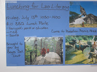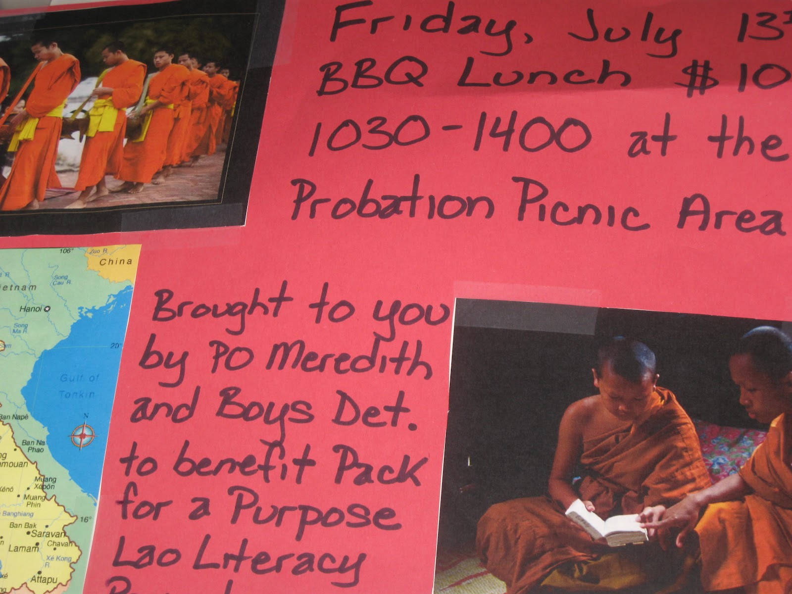The solution seemed within reach when I returned to my work as a probation officer in Anchorage and got permission to involve our delinquent youth in stocking the Lao library. One coworker thought a barbeque was the perfect way to raise funds, and had detainees prepare posters to display around our facility advertising Lunching for Lao Literacy. A second coworker skilled in culinary arts volunteered to make the food with the kids to sell to workers and community partners. A third coworker, a Lao probation officer, helped organized youthful probationers to work at the actual event, and his wife also prepared food for the barbeque.
